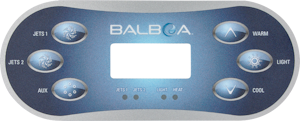 Balboa Panel TP600 utan overlay är kompatibel med kontrollsystemen Balboa BP200 G1, BP200 UX, BP600, BP601 3G1, BP601 3G2, BP2000 och BP2100 G1.